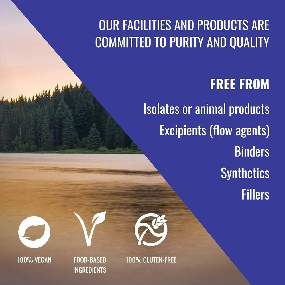 Certificado orgánico, vegano, kosher y sin gluten. Sin rellenos, aglutinantes ni agentes de flujo.