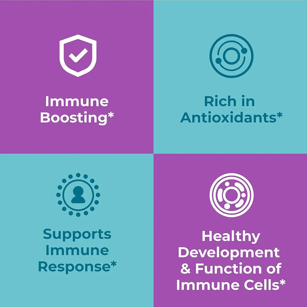 UNA POTENCIA INMUNOLÓGICA: Estas gomitas de refuerzo inmunológico con sabor a frutos del bosque están formuladas con saúco negro orgánico, zinc y vitamina C, una poderosa combinación para apoyar la función inmunológica saludable* en adultos.