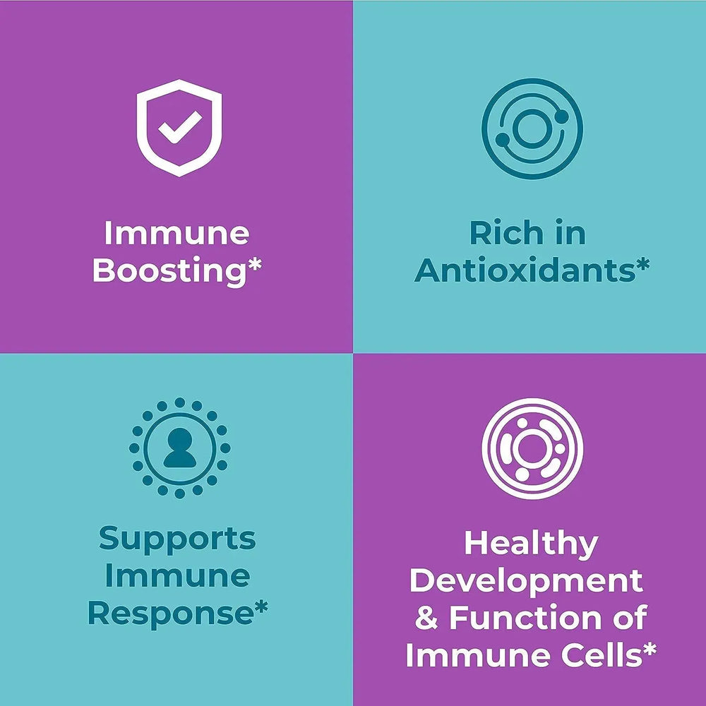 UNA POTENCIA INMUNITARIA: Estas gomitas de apoyo inmunológico con sabor a bayas están formuladas con saúco negro orgánico, zinc y vitamina C, una poderosa mezcla para apoyar la función inmune saludable* en adultos.