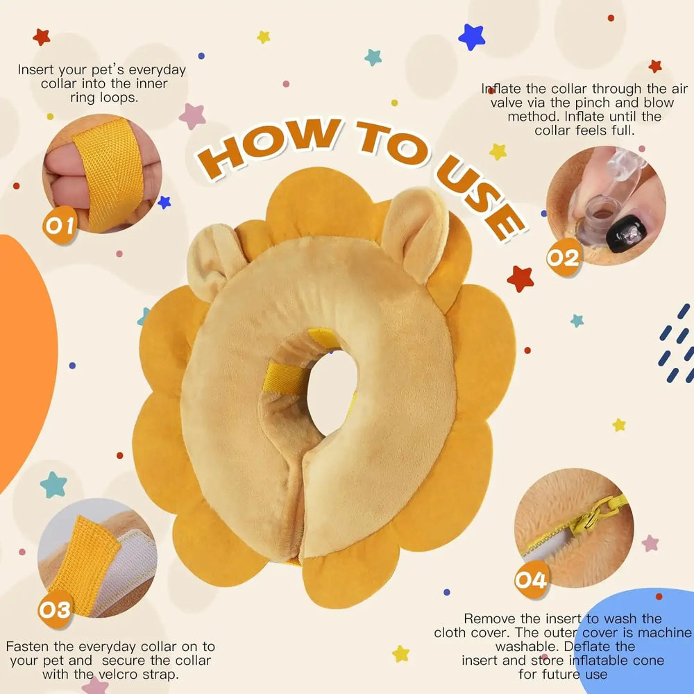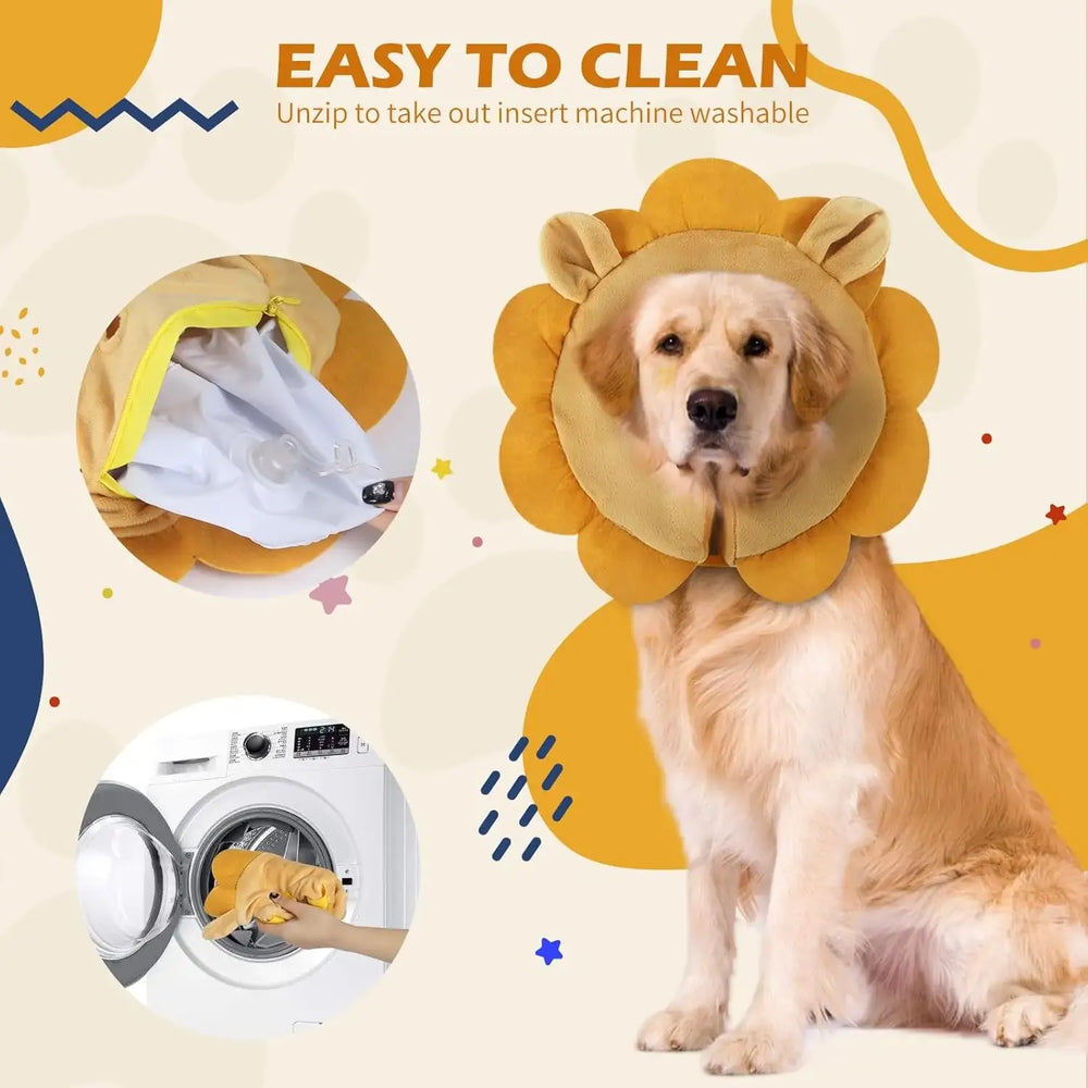 IEUUMLER Inflatable Recovery Dog Collar Brown Lion XLARGE