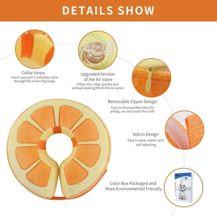 IEUUMLER Inflatable Recovery Dog Collar ORANGE LARGE Neck:14''-17''