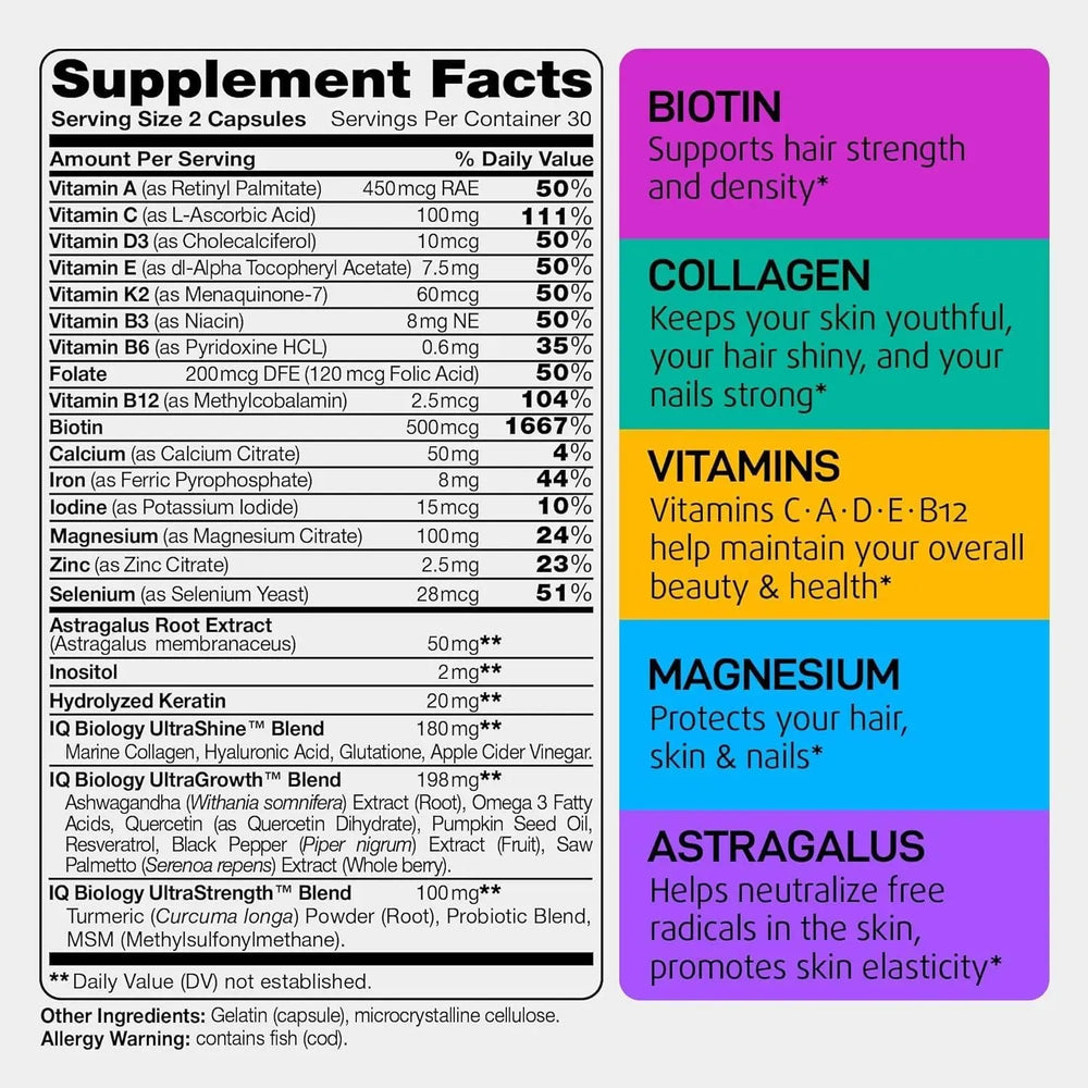 IQ BIOLOGY Hair Skin and Nails Vtamins 60 Capsulas