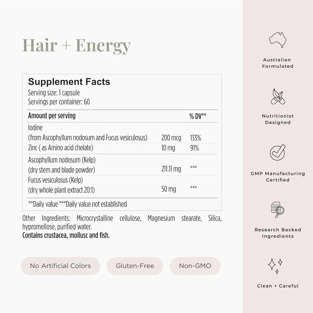 ¿Se siente cansado o con poca energía? ¡Es posible que no estés obteniendo suficiente yodo de tu dieta diaria! Es esencial tanto en hombres como en mujeres para fabricar hormonas tiroideas para regular el metabolismo y los niveles de energía del cuerpo. El yodo también ayuda al crecimiento del cabello.