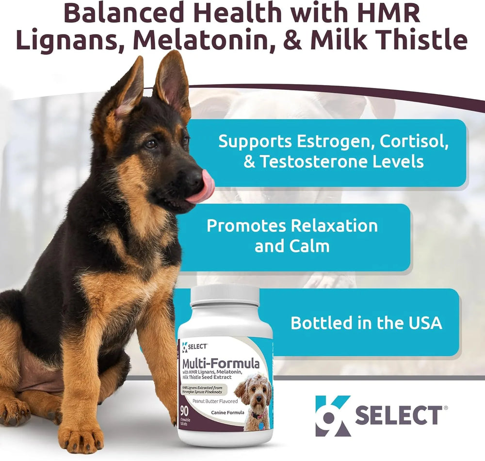 COMPLEJO DE LIGNANO MEJORADO PARA UN BIENESTAR TOTAL: Los suplementos multivitamínicos K9 Select para perros pequeños contienen una potente mezcla de 10 mg de lignanos HMR, 1 mg de melatonina y 20 mg de cardo mariano. Estas vitaminas y suplementos masticables para mascotas proporcionan una vitamina completa para perros, mejorando la salud general y ofreciendo una defensa antioxidante natural.
