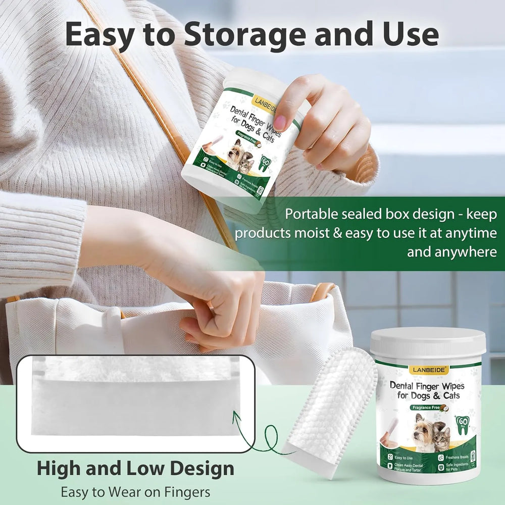 LANBEIDE Pet Teeth Cleaning Wipes for Dogs & Cats 60 Toallitas