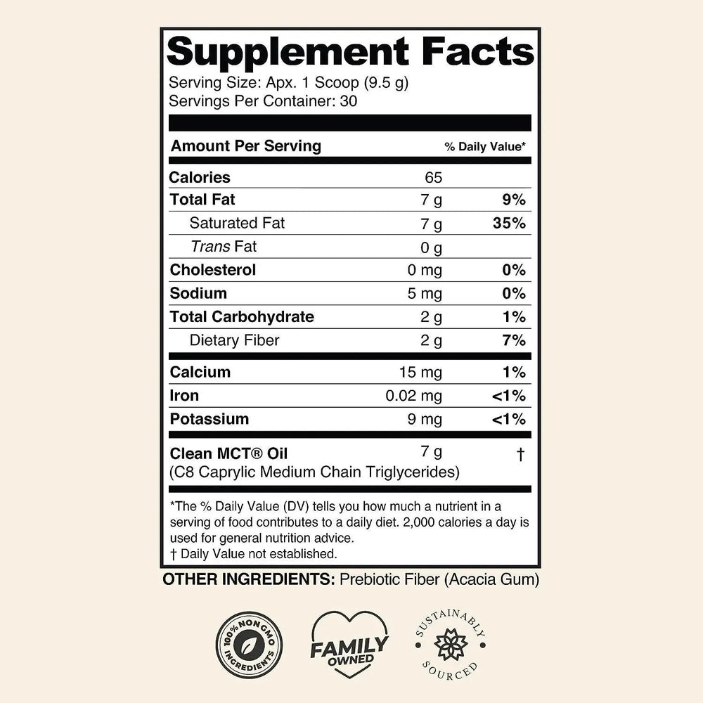 ENERGÍA: el aceite en polvo C8 MCT 100% puro (sin OGM) proporciona al cuerpo energía natural y claridad mental.