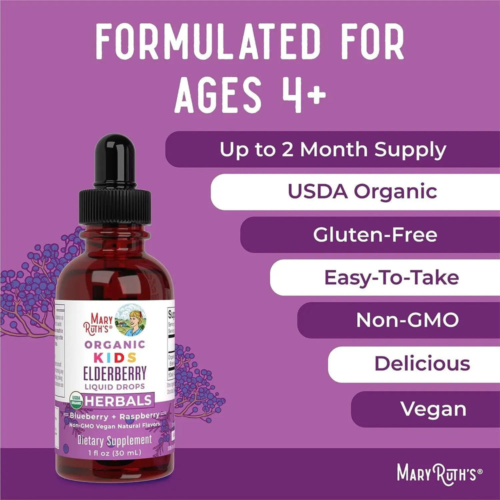 MaryRuth Organics Elderberry Liquid Drops for Kids Ages 4-13 30Ml.