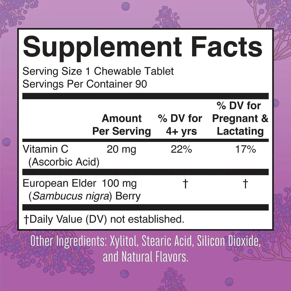 ¿Sabías que?: Estas tabletas también incluyen vitamina C para favorecer el desarrollo de los glóbulos blancos y proporcionar aún más propiedades antioxidantes. mientras le ayuda a alcanzar la dosis diaria recomendada de esta vitamina esencial. Con esta poderosa mezcla de bayas de saúco y vitamina C en forma de tableta masticable | puede estar seguro de que está ayudando a reforzar su sistema inmunológico y mejorar su salud en general.