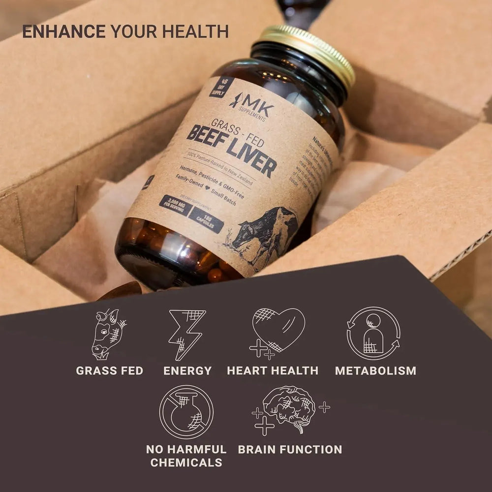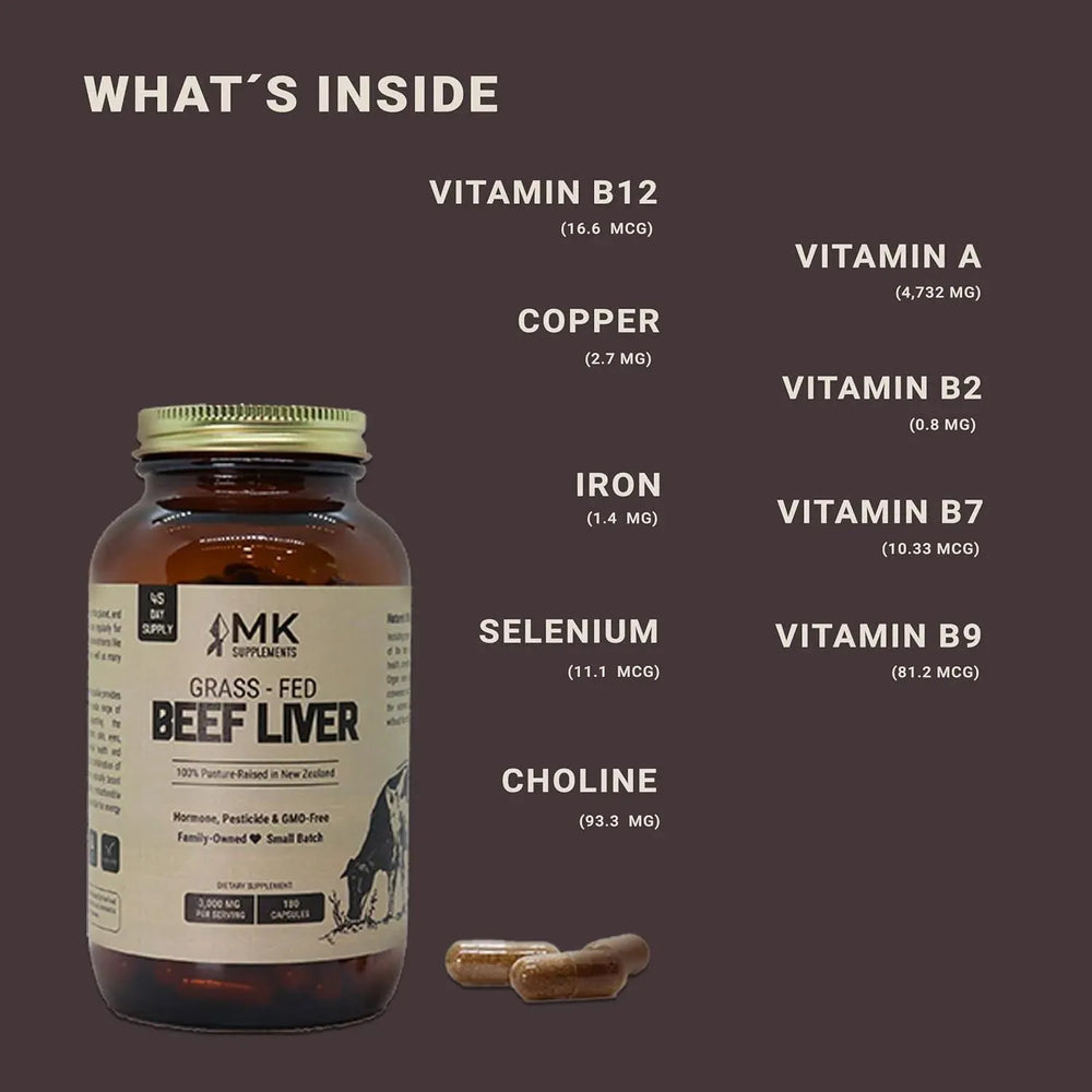MK Supplements Grass Fed Beef Liver 3000Mg. 300 Capsulas