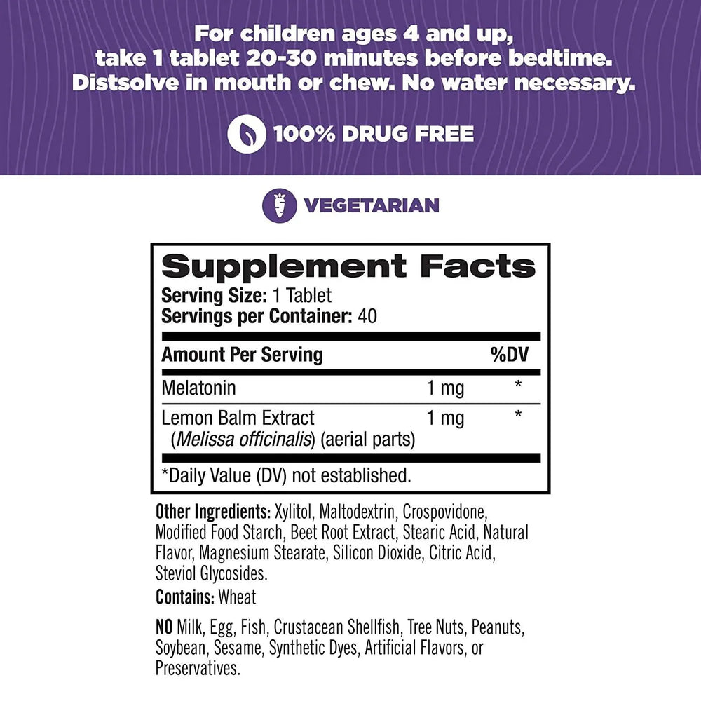 Nuestra fórmula suave de 1 mg de melatonina y bálsamo de limón calmante es segura y efectiva para niños de 4 años en adelante para ayudar a calmar a su hijo para que se duerma.