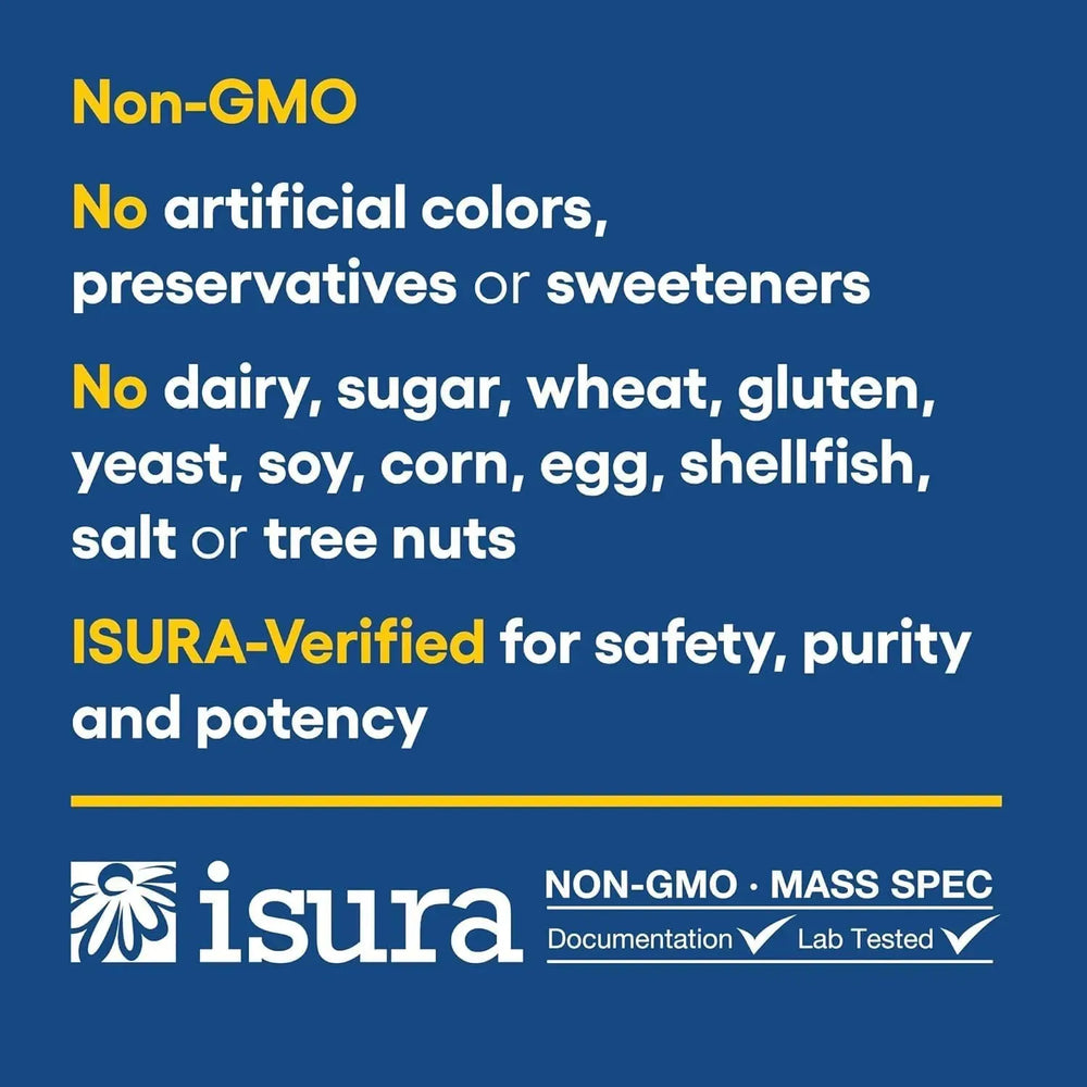 Certificado por terceros y probado de forma independiente para detectar OGM y más de 800 contaminantes mediante tecnología avanzada, como espectrometría de masas, para garantizar la pureza y la potencia