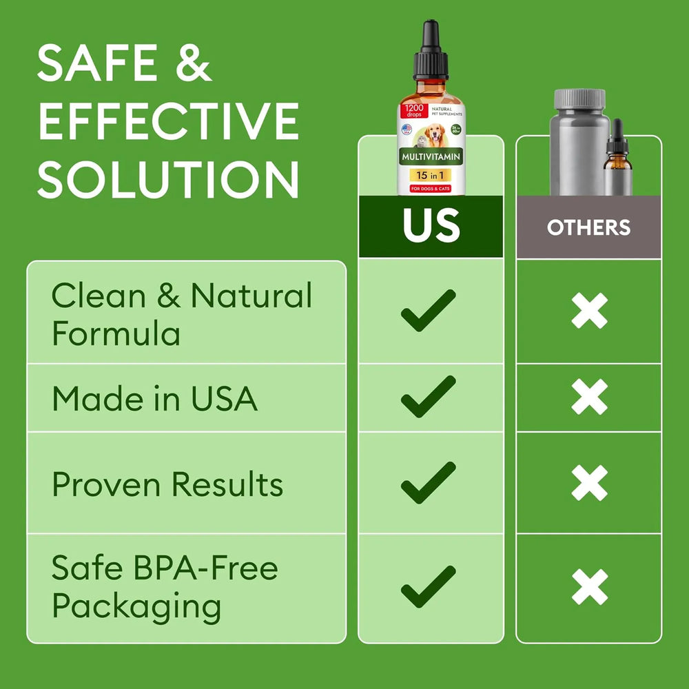Natural Pet Supplements 15-in-1 Liquid Multivitamin for Dogs & Cats 2 Fl.Oz.