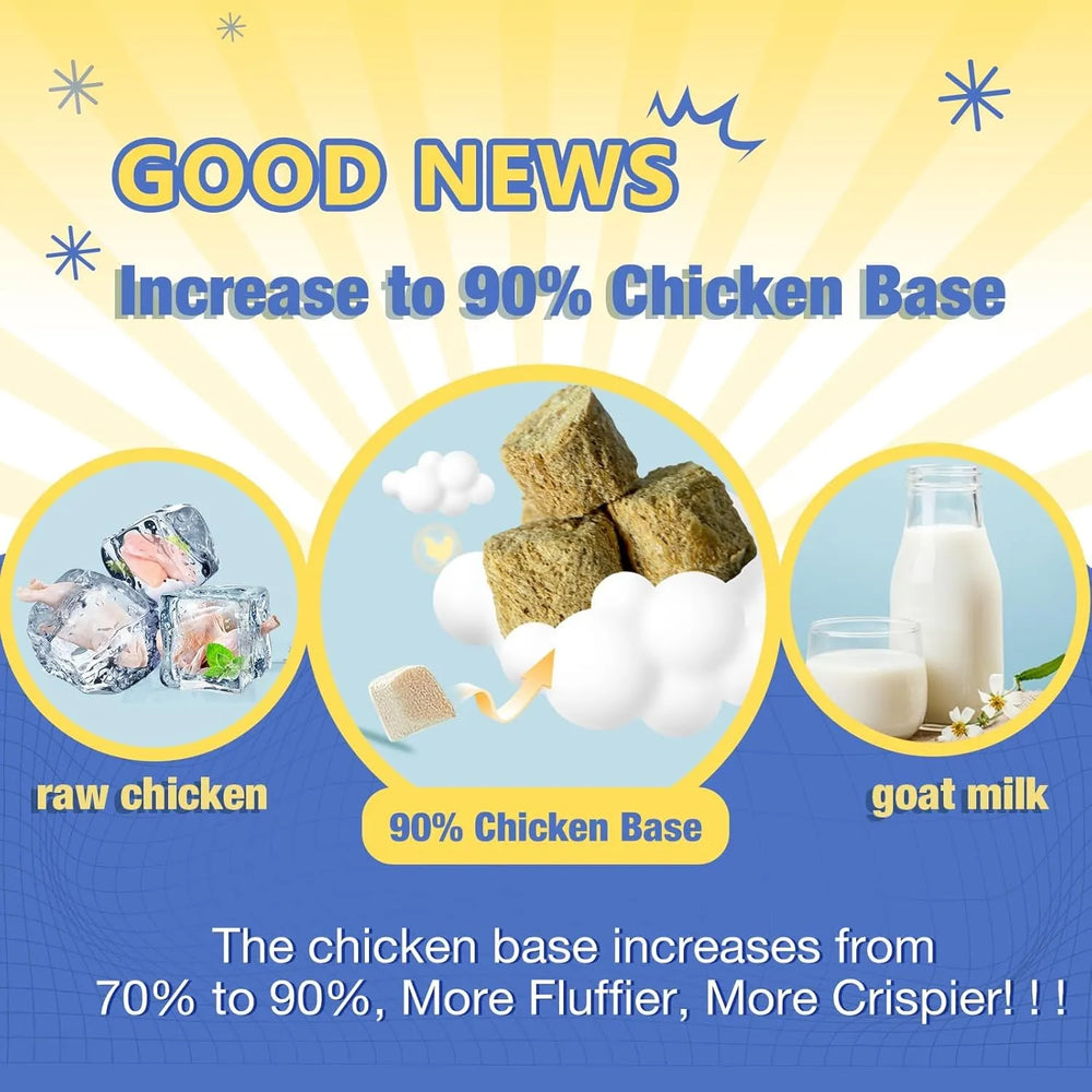 Masticables liofilizados: En algunas vitaminas y suplementos para perros, estas vitaminas y minerales se degradan durante la preparación y el almacenamiento. Nosotros hemos optado por la liofilización para preservar al máximo su valor nutricional original, lo que nos distingue de otras marcas. Añadimos leche cruda de pollo y cabra para ofrecer ingredientes de la mejor calidad y un sabor excepcional. CONSEJOS: Los masticables liofilizados son crujientes. Si se trata de un perro joven o mayor, se recomienda remojar el masticable en agua durante dos minutos. APOYO INMUNOLÓGICO Y DIGESTIVO: Las vitaminas masticables crujientes para perros contienen 12 vitaminas y 8 minerales que ayudarán a mejorar la calidad de vida de tu mascota. Nuestras vitaminas ayudan a mantener un sistema inmunitario sano y a procesar los residuos ambientales, reduciendo la inflamación y aliviando las alergias. Las enzimas digestivas ayudan a descomponer los alimentos difíciles de digerir, y los probióticos para perros ayudan a equilibrar la microbiota intestinal, manteniendo la salud intestinal y reduciendo los problemas digestivos.