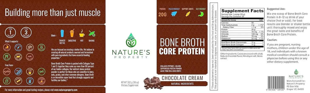Nature's Property Chocolate Bone Broth Protein Powder 512Gr.