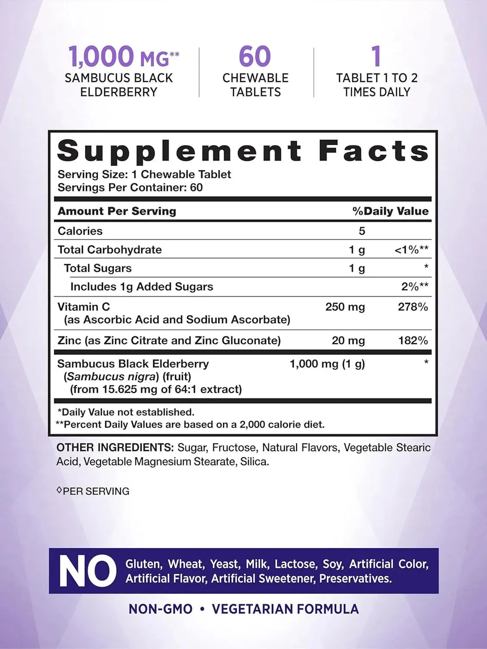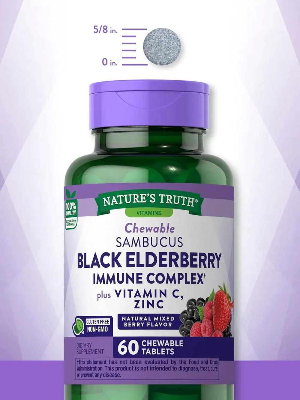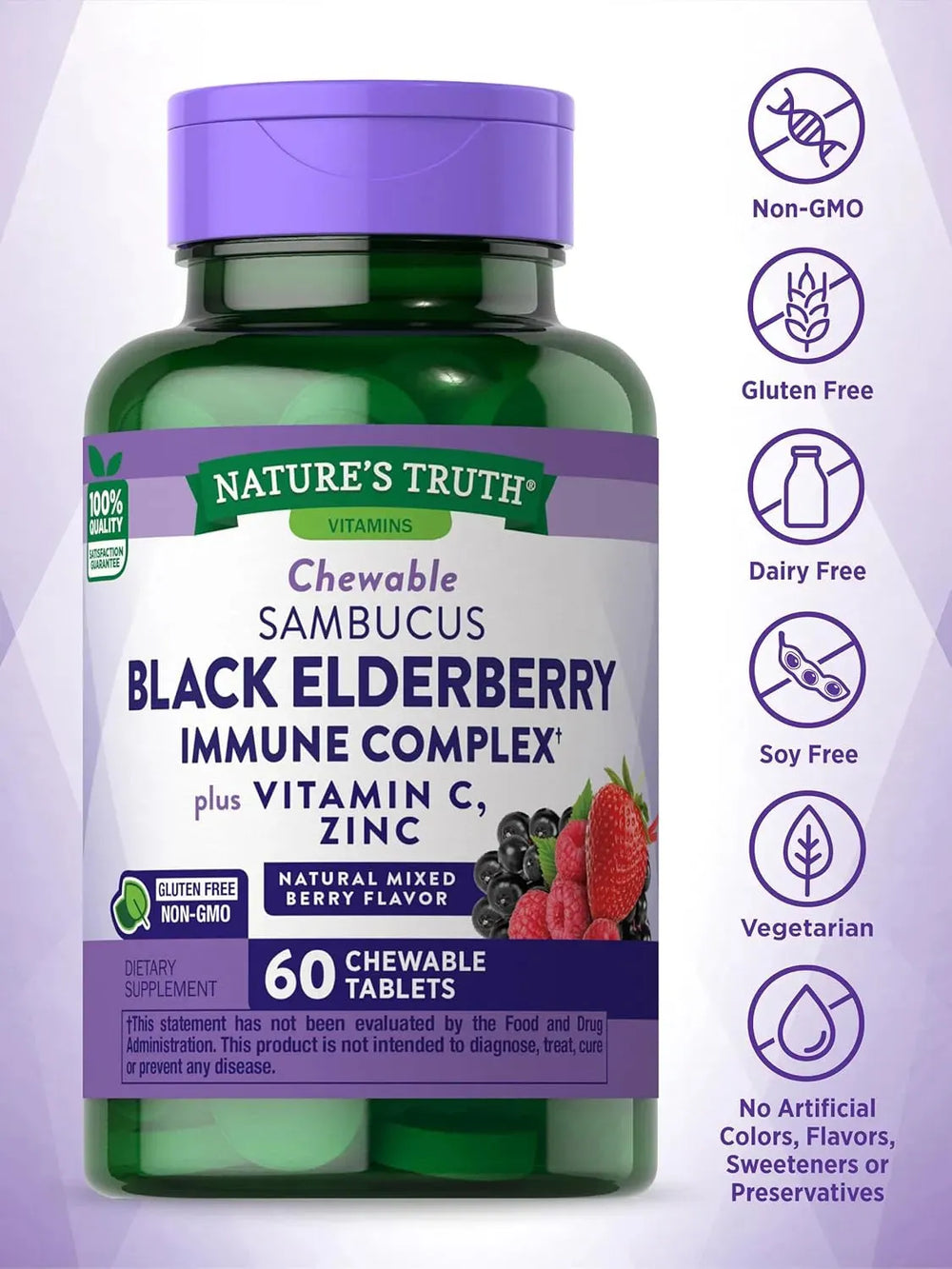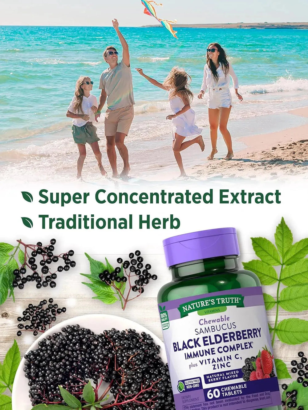 Nature's Truth Black Elderberry Immune Complex 60 Tabletas Masticables