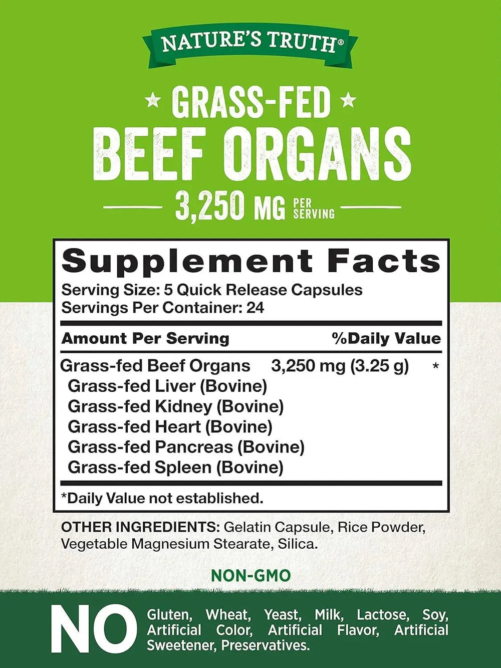 Nature's Truth Grass Fed Beef Organs 3250Mg. 120 Capsulas