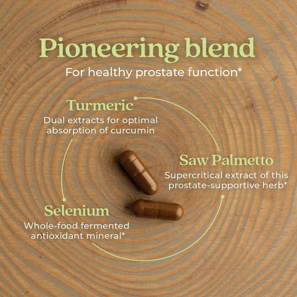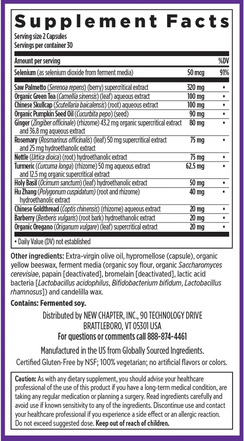 Los potentes extractos de hierbas ofrecen un espectro completo de compuestos vegetales y aceites beneficiosos, como la palma enana americana supercrítica, el aceite de semilla de calabaza orgánico y la cúrcuma.
