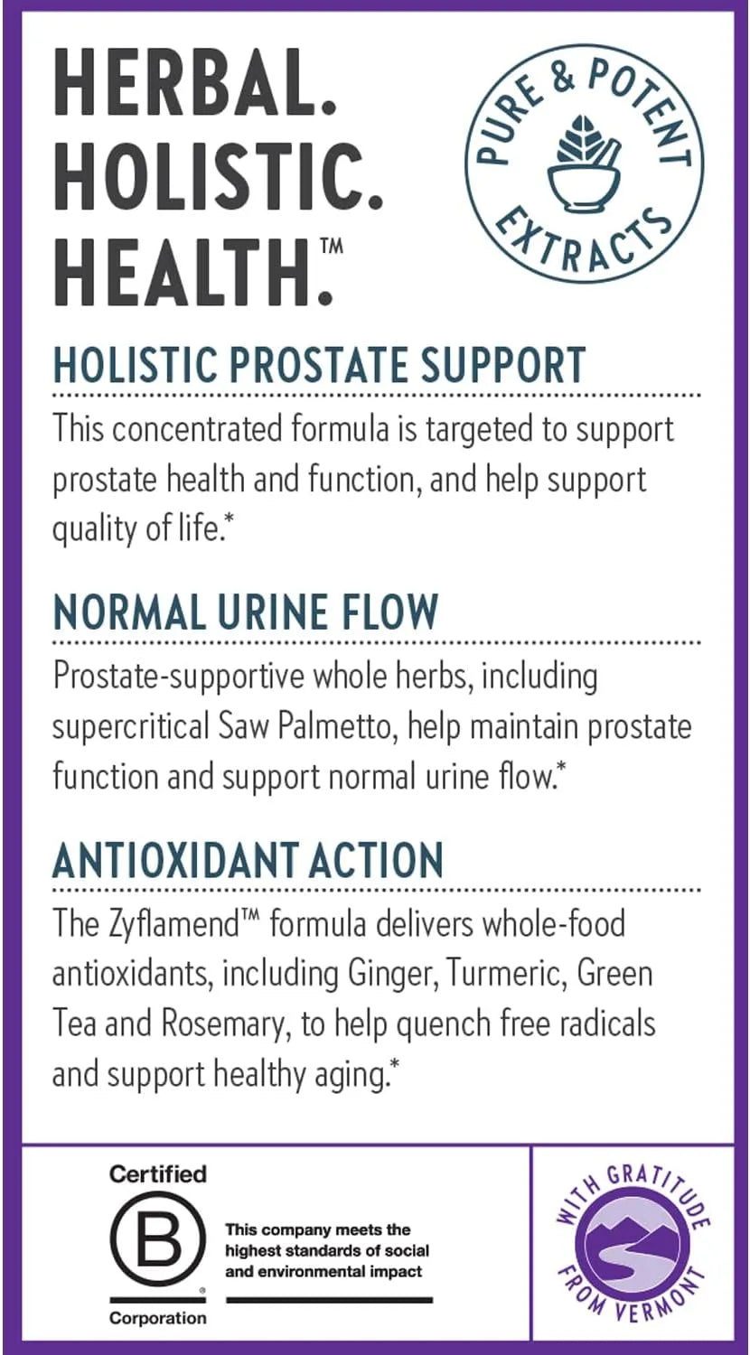 Apoyo holístico para la próstata: El suplemento Zyflamend Prostate favorece la salud y el funcionamiento de la próstata, y contribuye a una mejor calidad de vida.