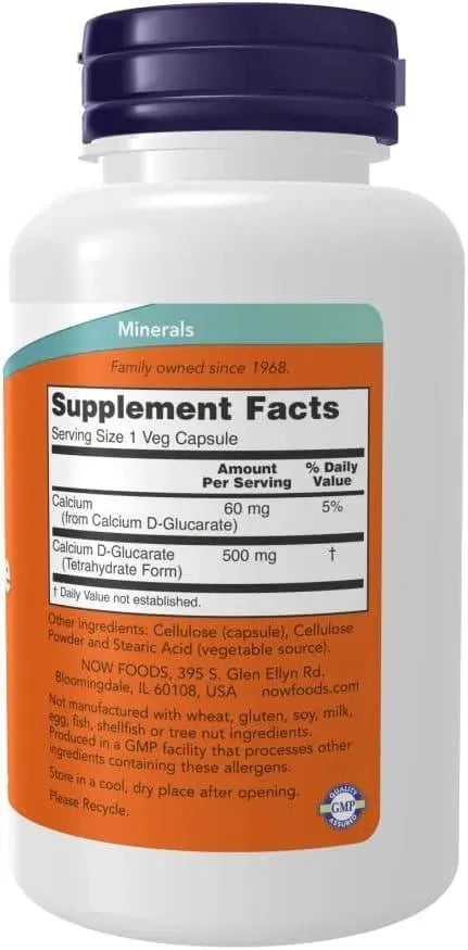 NOW Supplements Calcium D-Glucarate 500Mg. 90 Capsulas