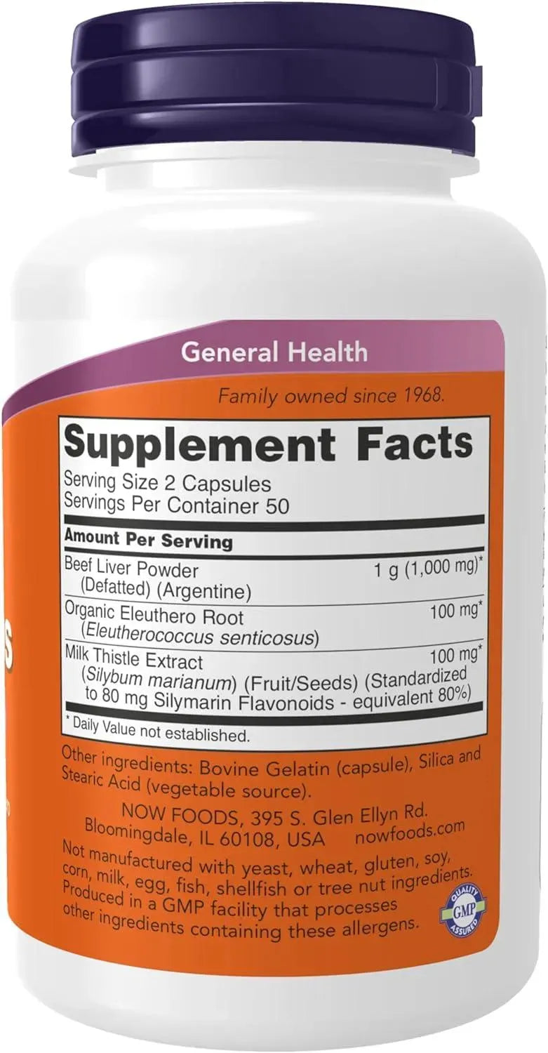 NOW Supplements Liver Caps with Milk Thistle and Eleuthero 100 Capsulas