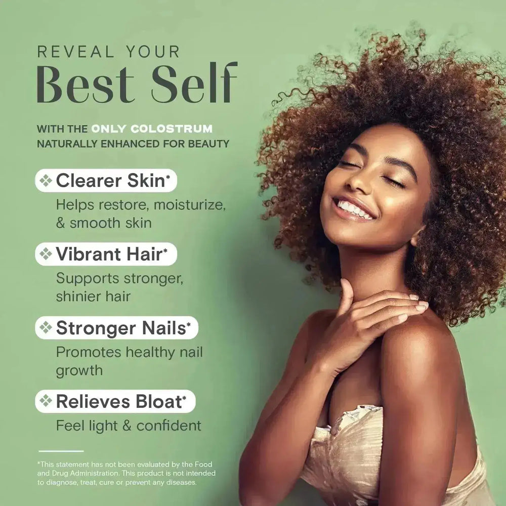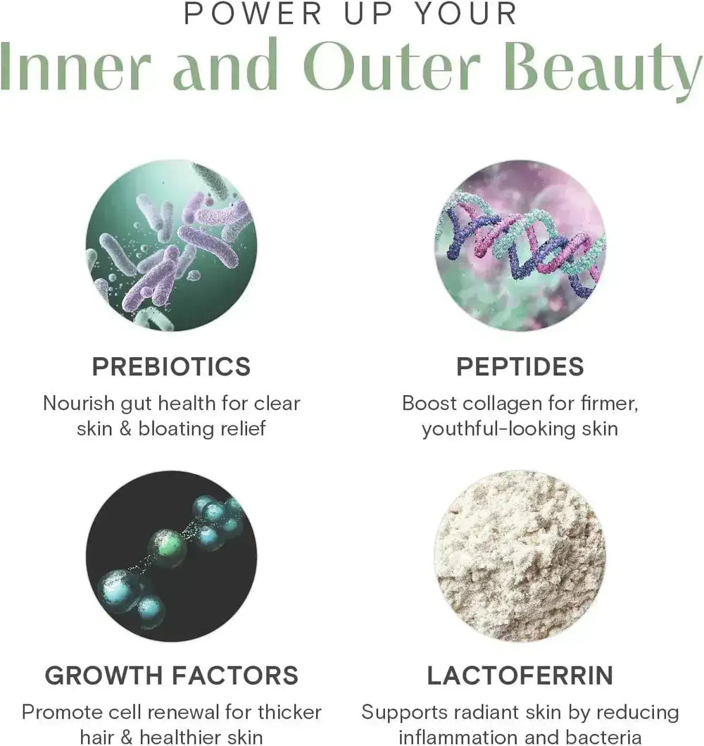 Suplemento diario para favorecer el bienestar de todo el cuerpo: nuestro suplemento de calostro puro en polvo proporciona beneficios integrales, como el apoyo a una piel clara y joven, un cabello más abundante y exuberante, uñas más fuertes y saludables, propiedades antienvejecimiento, una mejor salud intestinal, un mayor crecimiento y reparación de los músculos y un apoyo al sistema inmunológico. Con su riqueza de bioactivos esenciales como lactoferrina, factores de crecimiento, inmunoglobulinas y péptidos, el suplemento de calostro en polvo de Prelude es el único superalimento que favorece la salud y el bienestar de todo el cuerpo.