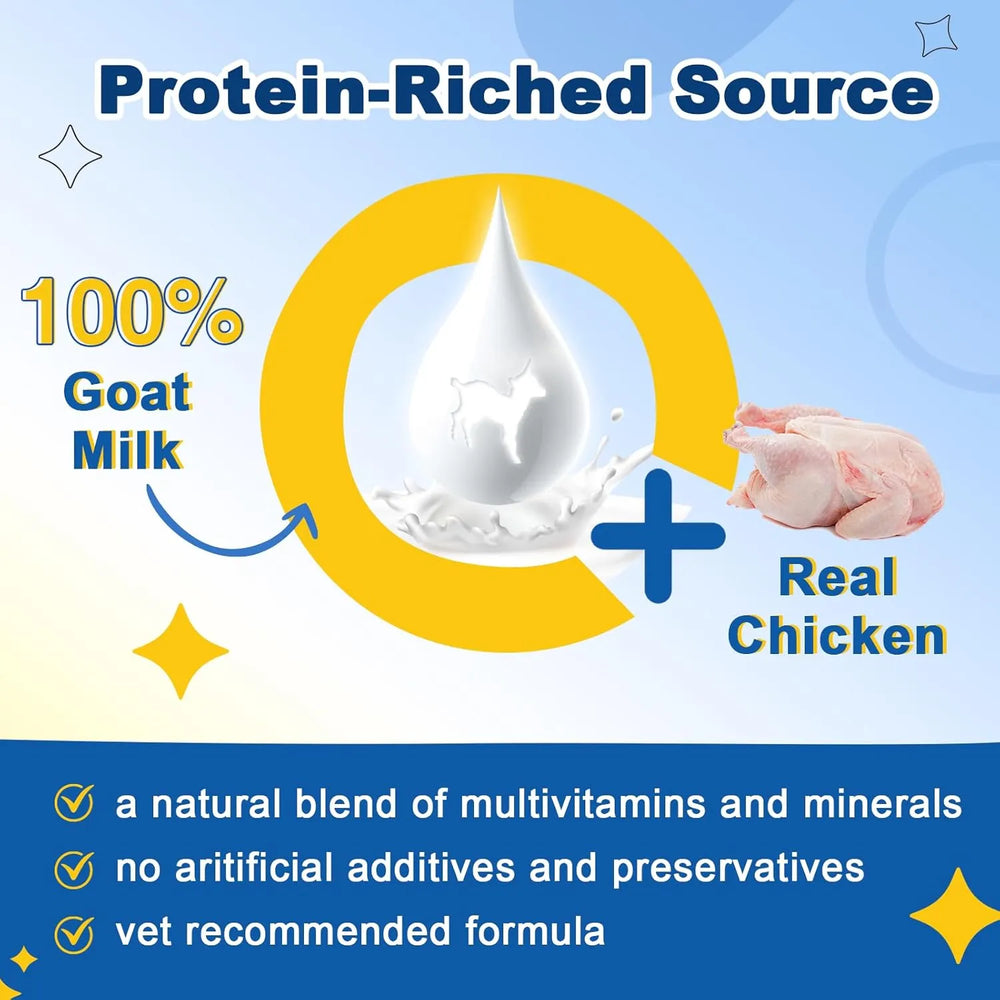 INGREDIENTES TOTALMENTE NATURALES Y SABROSOS: Añadido con leche de cabra en polvo y pollo real, el multivitamínico natural para perros garantiza que cada cucharada sea un sabroso complemento para la comida de tu perro que tu perro esperará con ansias agregar a su rutina diaria.