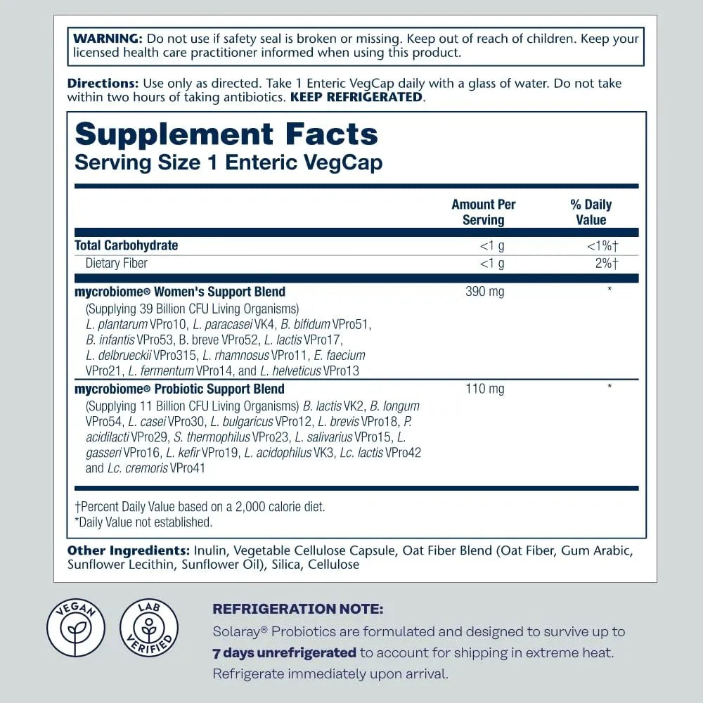 SOLARAY Mycrobiome Probiotic Women’s Formula 30 Capsulas