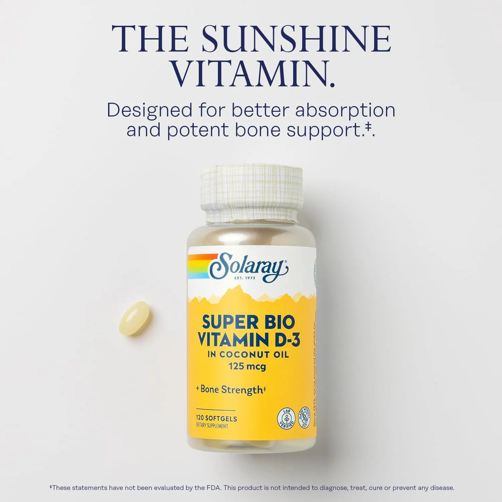 Solaray Super Bio Vitamin D3 in Coconut Oil 125mcg 120 Capsulas Blandas