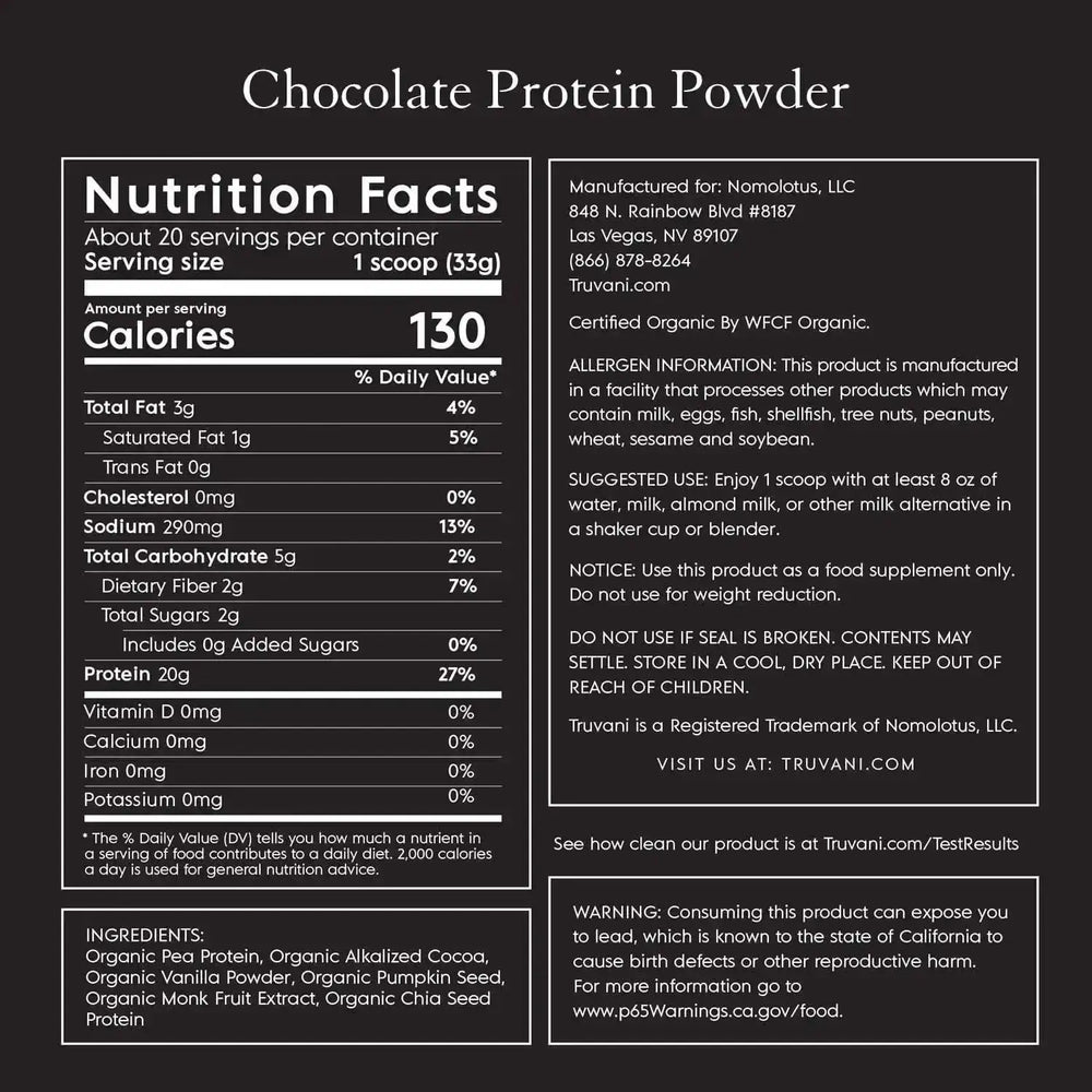 Fórmula limpia, sin aditivos ni rellenos: experimente una nutrición pura con el polvo de proteína vegetal Truvani, libre de edulcorantes artificiales, aditivos inútiles y rellenos extraños. Nuestra fórmula excluye la soja, el trigo, los lácteos, el gluten y la stevia, lo que garantiza una mezcla limpia y saludable. Disfrute de la dulzura del monk fruit orgánico sin azúcares agregados.
