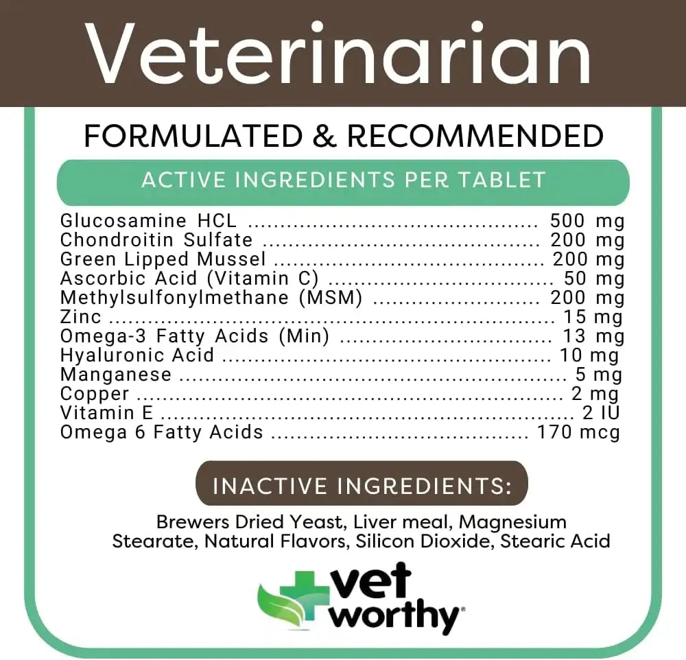 Vet Worthy Joint Support Level 4 Dog Supplement 60 Tabletas Masticables