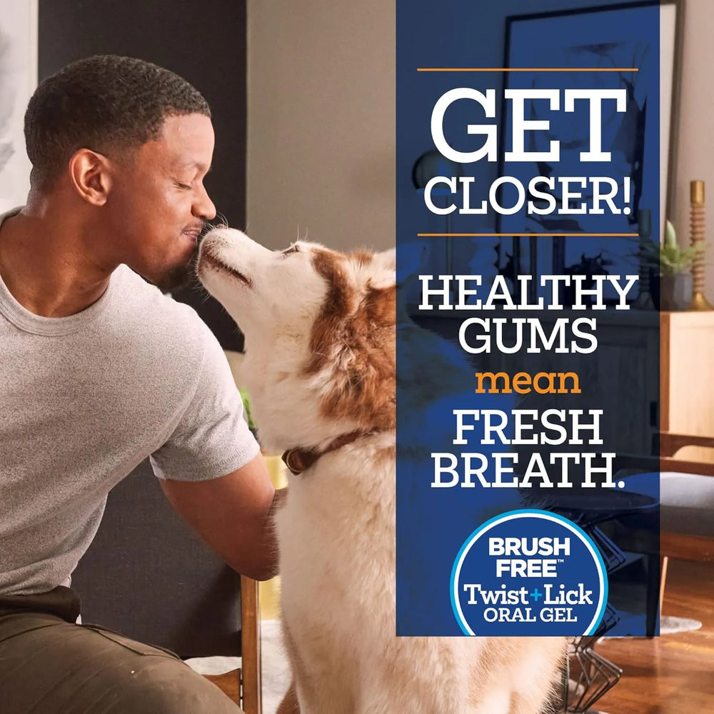 ¿CANSADO DE CEPILLARLE LOS DIENTE? Cepillarle los dientes a tu perro es bueno y efectivo, pero solo si realmente lo haces. Descubre Twist + Lick. Es fácil. Tú giras. Tu perro lame, ¡y listo! Nuestro gel patentado ProLong, repleto de potentes agentes limpiadores, hace el resto.