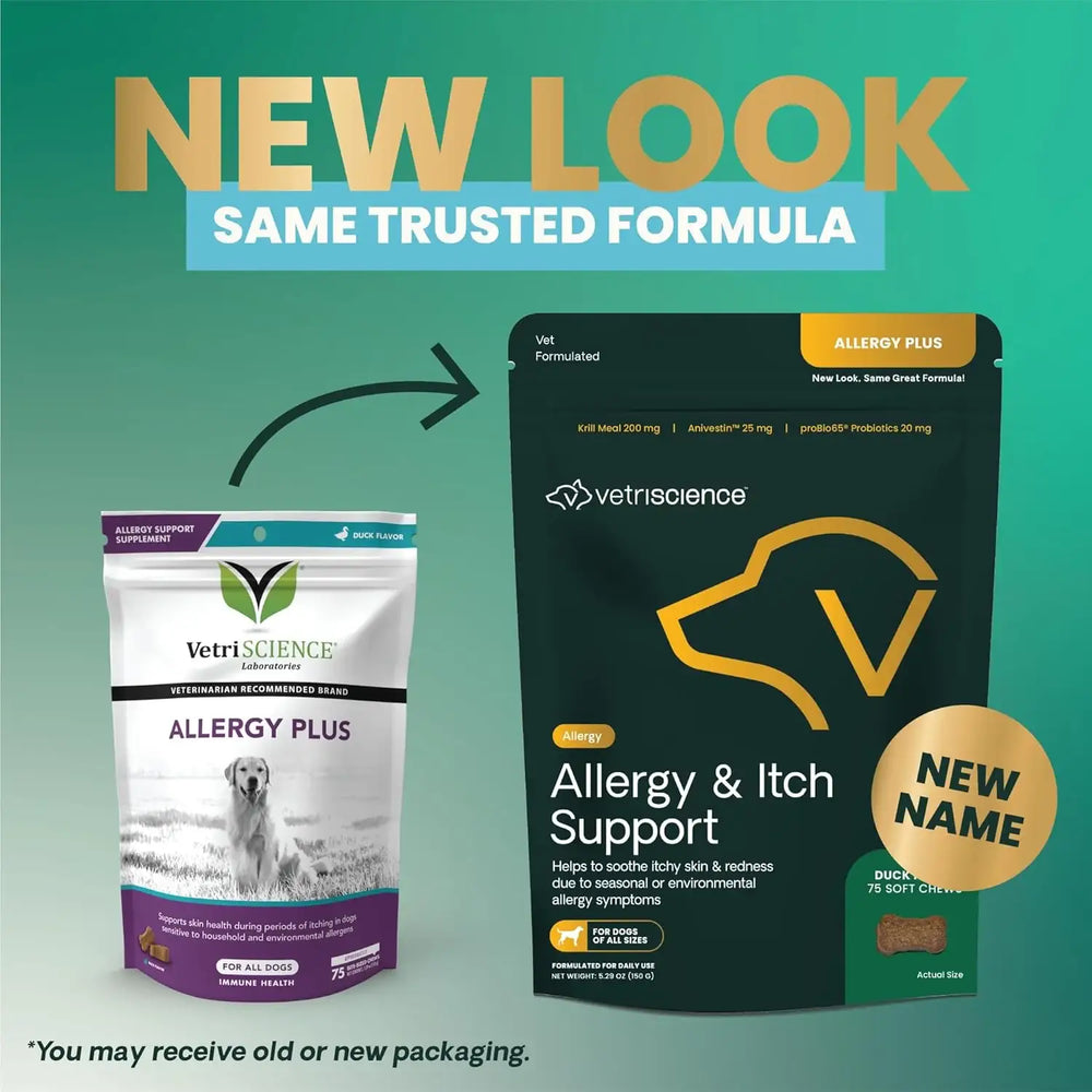 Suave y apto para alérgenos: Con sabor a pato hidrolizado, Allergy & Itch Support es ideal para perros sensibles a alérgenos alimentarios comunes, ofreciendo un apoyo inmunitario y para las alergias caninas seguro durante todo el año.