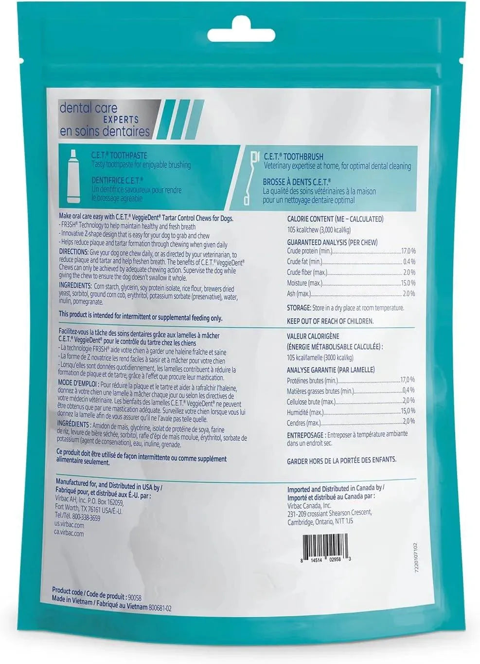 Virbac CET Veggiedent FR3SH Tartar Control Chews for Large Dogs Over 66 Pounds 30 Piezas