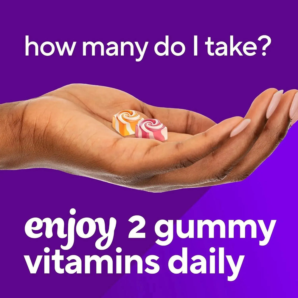 Vitaminas gomosas para adultos que ayudan con el soporte de los dientes y los huesos con vitamina D para ayudar en la absorción de calcio (1), ideales como vitaminas diarias