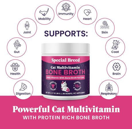 - SPECIAL BREED - Special Breed Cat Multivitamin with Grass-Fed Beef Bone Broth 90Gr. Precio normal $ 1,299.00 MXNPrecio unitario /Agotado