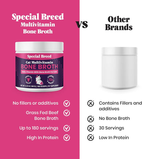 - SPECIAL BREED - Special Breed Cat Multivitamin with Grass-Fed Beef Bone Broth 180Gr. Precio normal $ 1,599.00 MXNPrecio unitario /Agotado