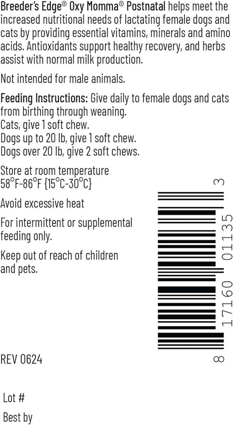 - BREEDER'S EDGE - Breeder's Edge Oxy Momma Nursing & Recovery Supplement 40 Masticables Precio normal $ 1,799.00 MXNPrecio unitario /Agotado