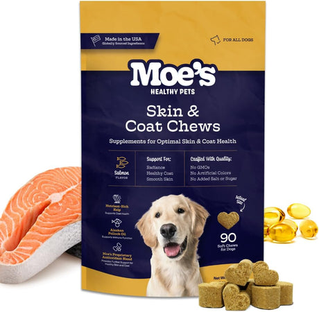 - MOE'S HEALTHY PETS - Moe’s Skin & Coat Omega 3 6 9 and Vitamin Supplement for Dogs 90 Masticables Precio normal $ 1,499.00 MXNPrecio unitario /Agotado
