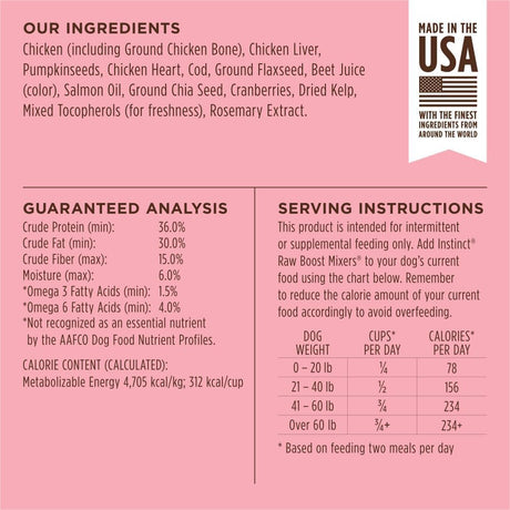 - INSTINCT - Instinct Raw Boost Mixers Skin & Coat Health Freeze-Dried Dog Food Topper 354Gr. Precio normal $ 1,649.00 MXNPrecio unitario /Agotado