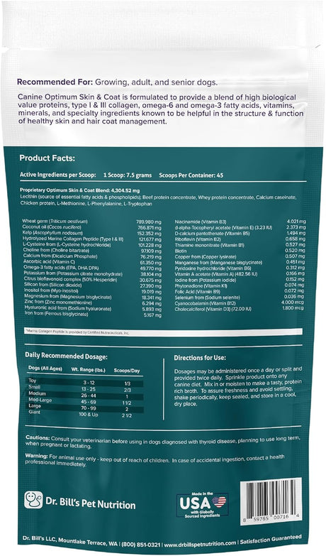 - DR. BILL'S - Dr. Bill's Canine Optimum Skin & Coat 340Gr. Precio normal $ 1,699.00 MXNPrecio unitario /Agotado