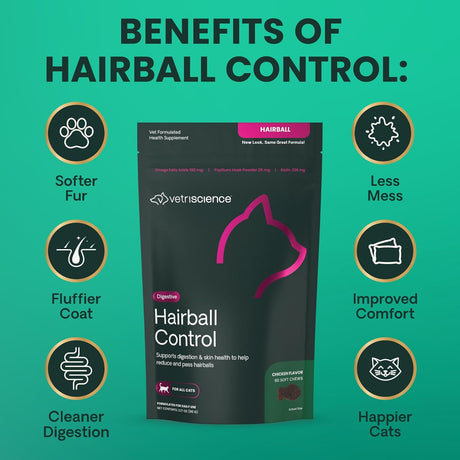 - VETRISCIENCE - VetriScience Hairball Control Chews 60 Masticables Precio normal $ 1,249.00 MXNPrecio unitario /Agotado